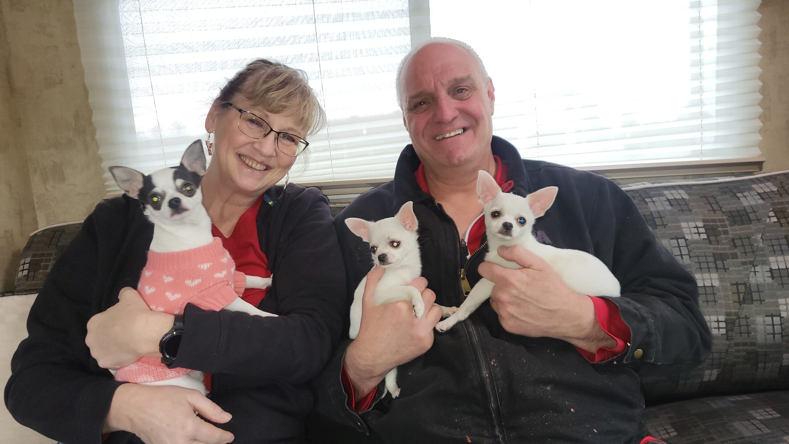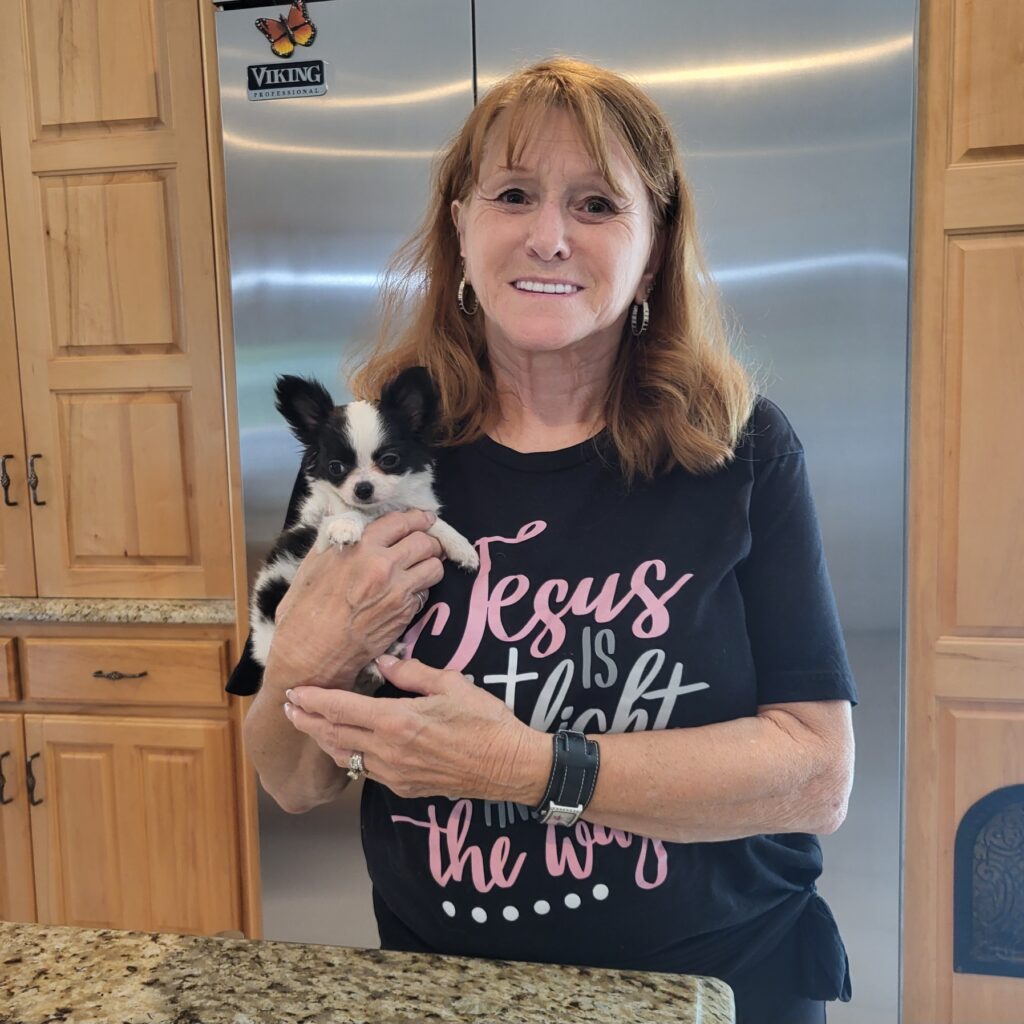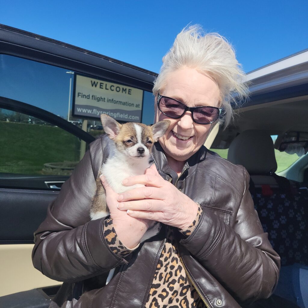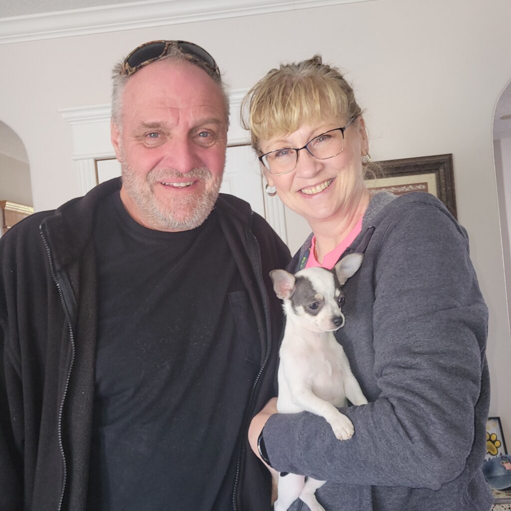 Well Sharlette, it’s been just 2 years and almost 2 months since our beautiful baby girl Melina was born back in 2019 and we came and invited her into our family and hearts. It was a long drive for me as I am disabled and really doing much worse now due to injuries but it was so worth the trip and the pain of the long drive. It was so wonderful meeting you and your husband along with your sweet little dogs. The ride home was hard but I had my new little girl Melina all snuggled up on my shoulder most of the way home and she continues to be at my side or on my shoulder or belly flaked out or playing. I have had some serious health issues and surgeries and was comforted by my little Chihuahua Melina. God truly blessed us with her and guided my wife and I both to her not knowing the other was or had been looking at her on your website. I called my wife and said I think I found our new little girl and described her and before I could finish my wife Sandy said “is she on the Tidwell’s website”? It was then we knew that God had guided us to you all and her. I want to stay in touch with you all and update you on our lives since we claim you as part of the family now and you gave us the blessing of my little companion at a fair price and along with much advice on care and such things even though I have had Chihuahua’s most of my life since I was 6 years old and you as such a big help even for a long time owner.I pray we see each other again someday and will keep you and your family in our thoughts and prayers always.
